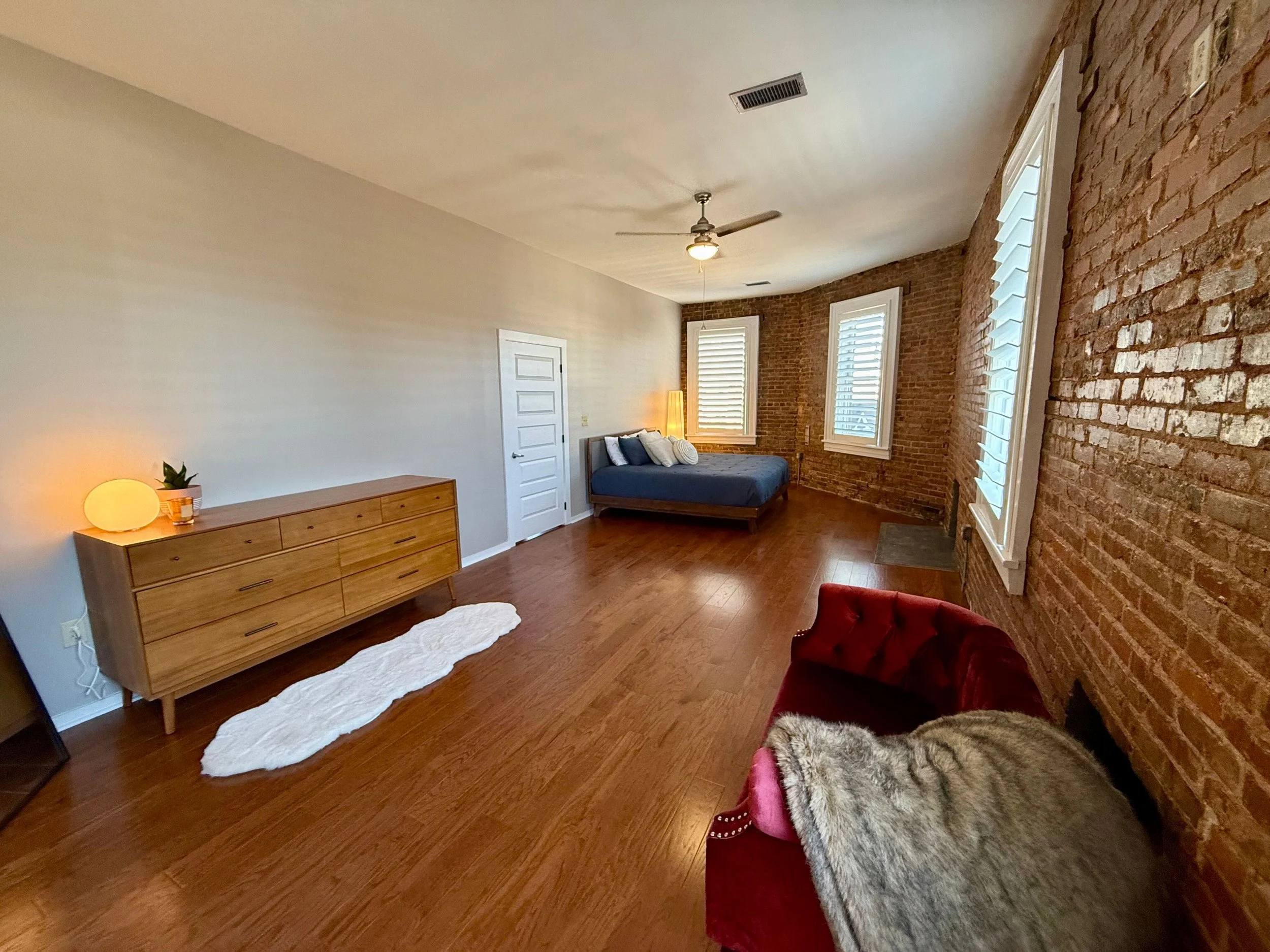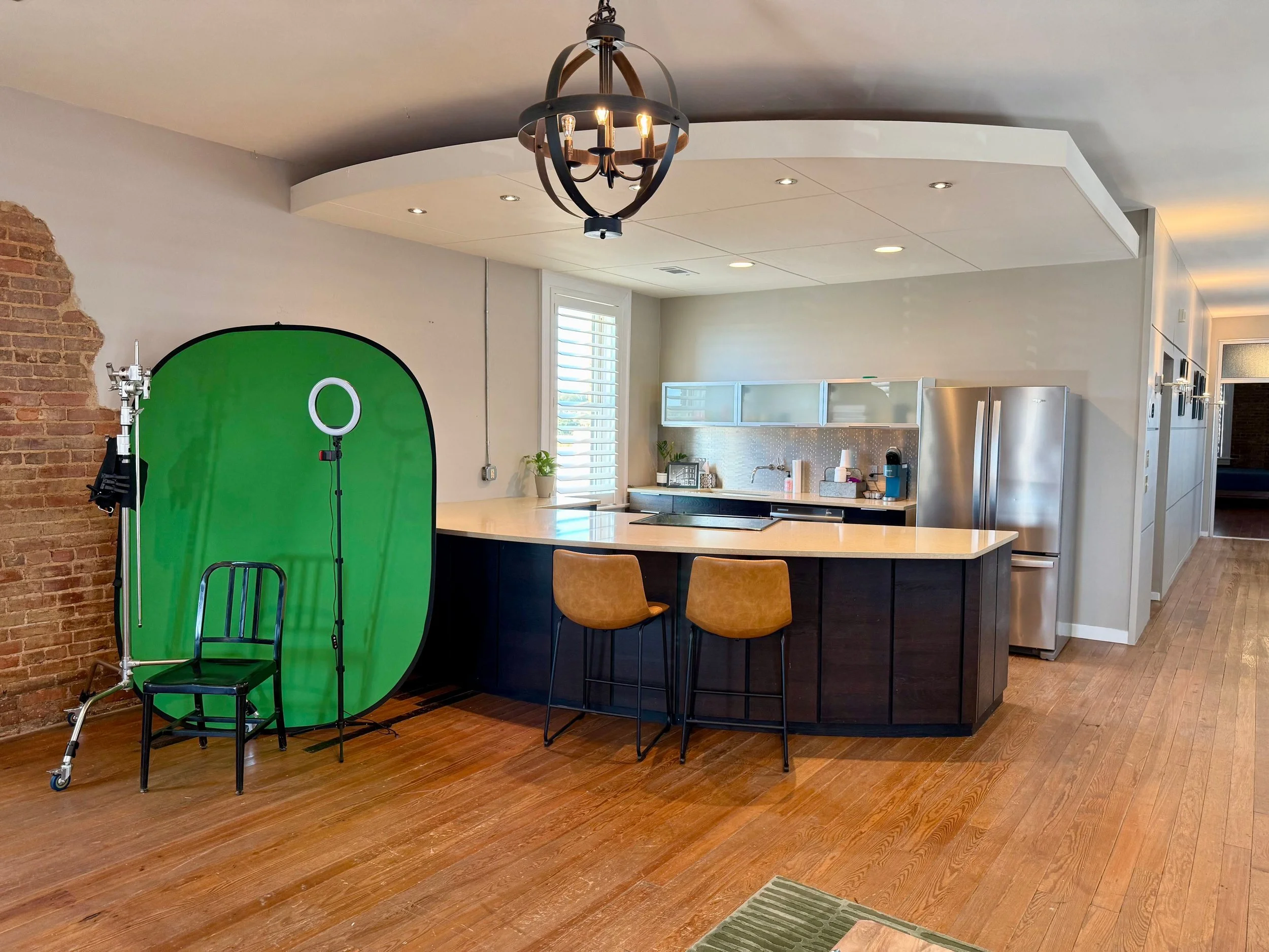 The entire space is just over 2,300 square feet, and is broken up into an open studio space, a product photography studio, and a private photography studio perfect for boudoir photos. There is also a full kitchen, laundry room, 3 restrooms, and a dressing room.